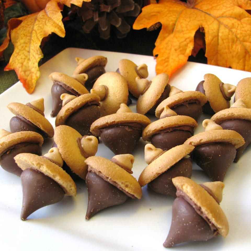 Delicious cookies shaped like acorns with candy toppings.